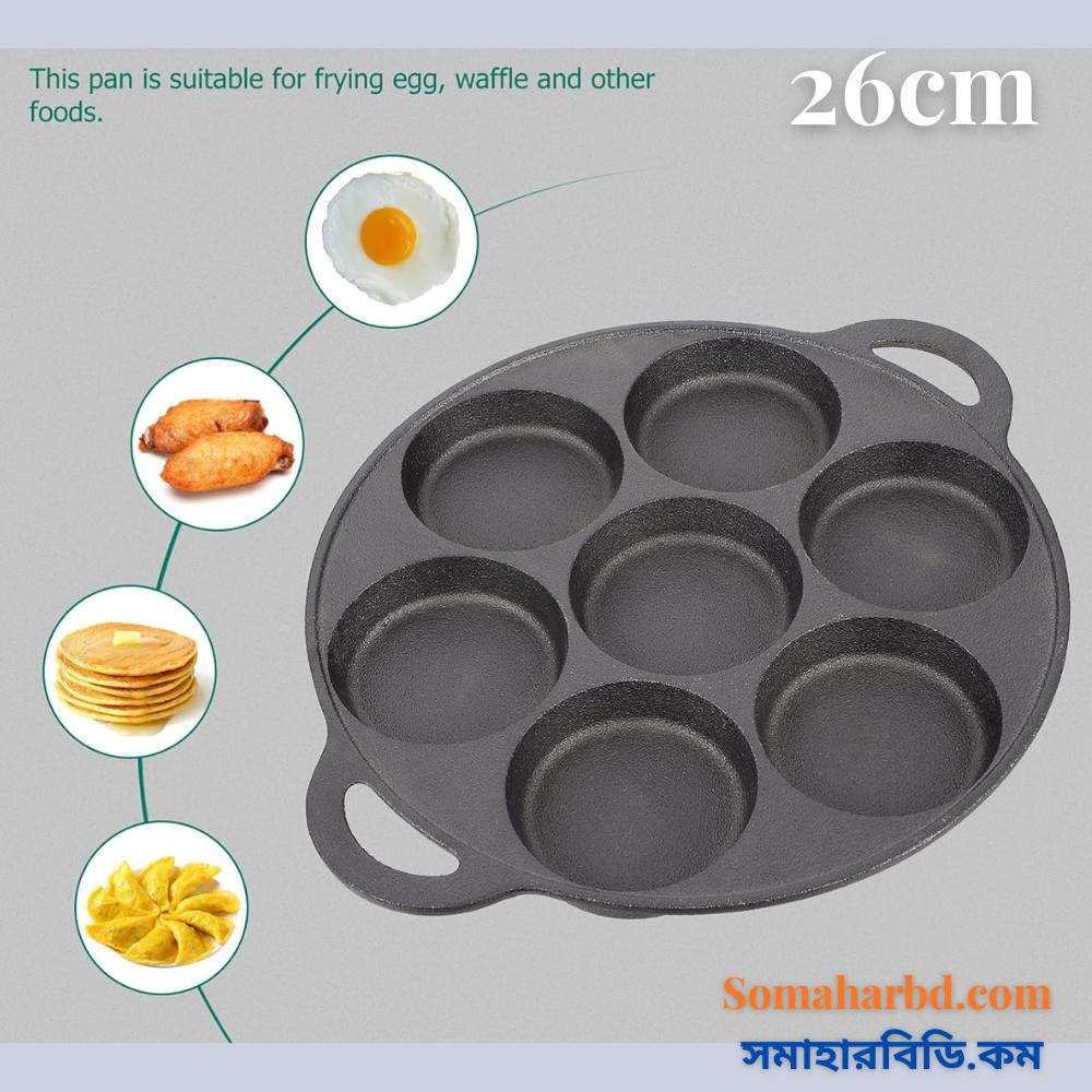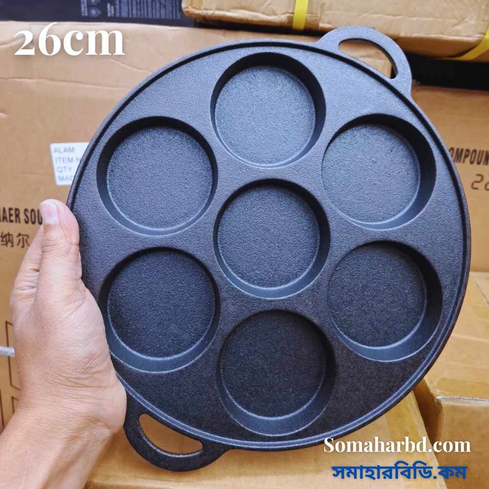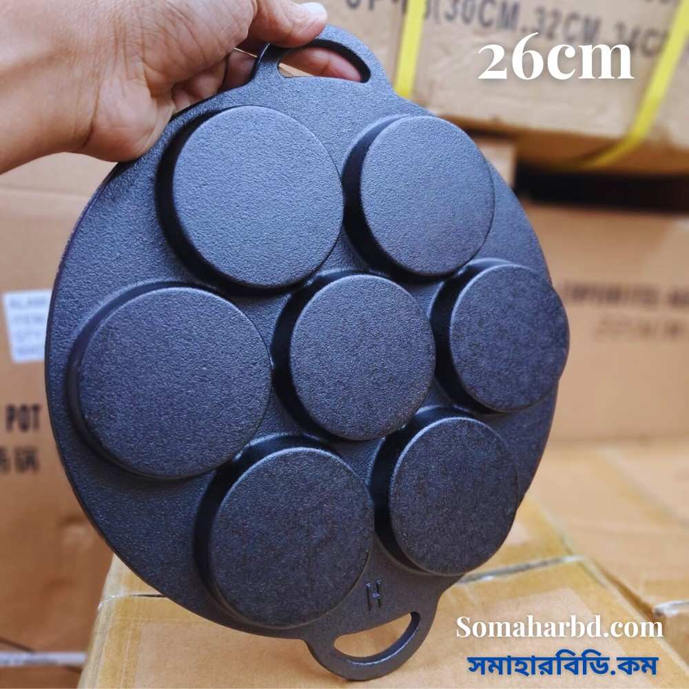 উচ্চ মানের Cast Iron দিয়ে তৈরি এই প্যানটি দীর্ঘদিন টেকসই এবং সমানভাবে তাপ ধরে রাখে।