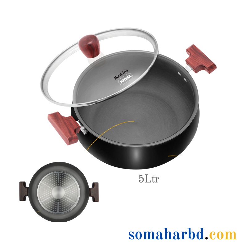 Hawkins Futura Hard Anodised Biryani Handi 5Ltr With Glass Lid, Induction Saucepan, Sauce Pan, Black (IACH50G)