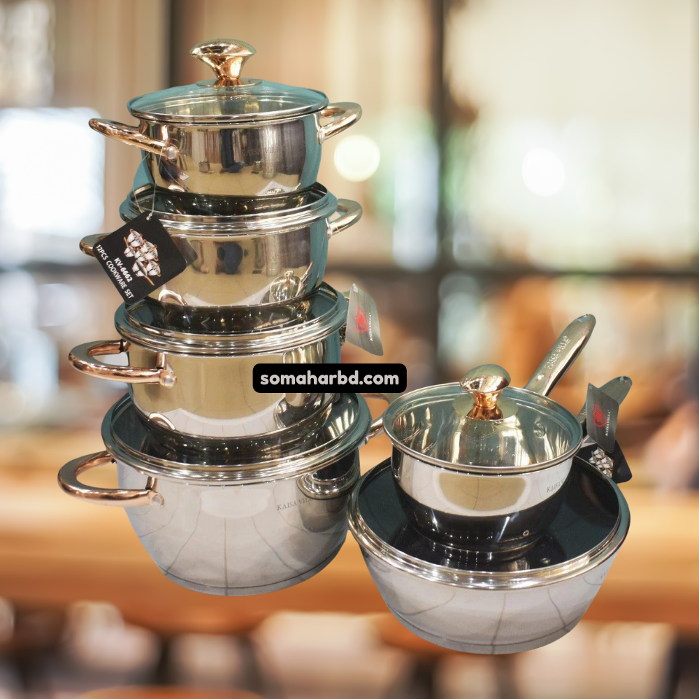 Kaisa Villa Stainless Steel Cookware Set 12pc With Lid KV-6618.