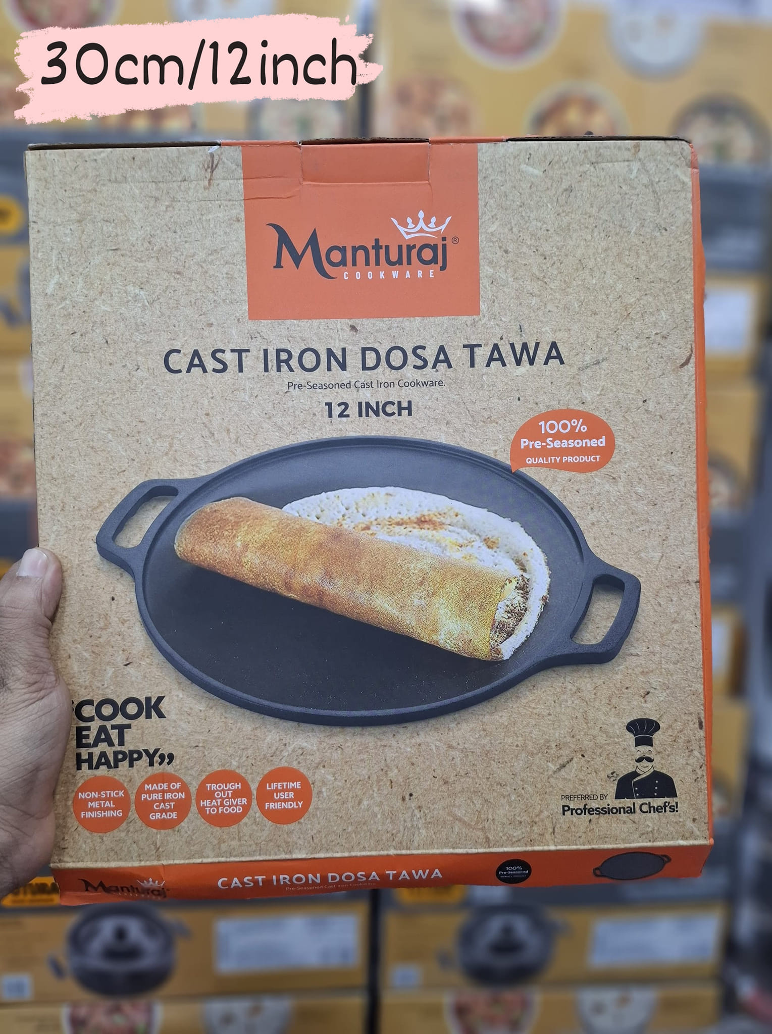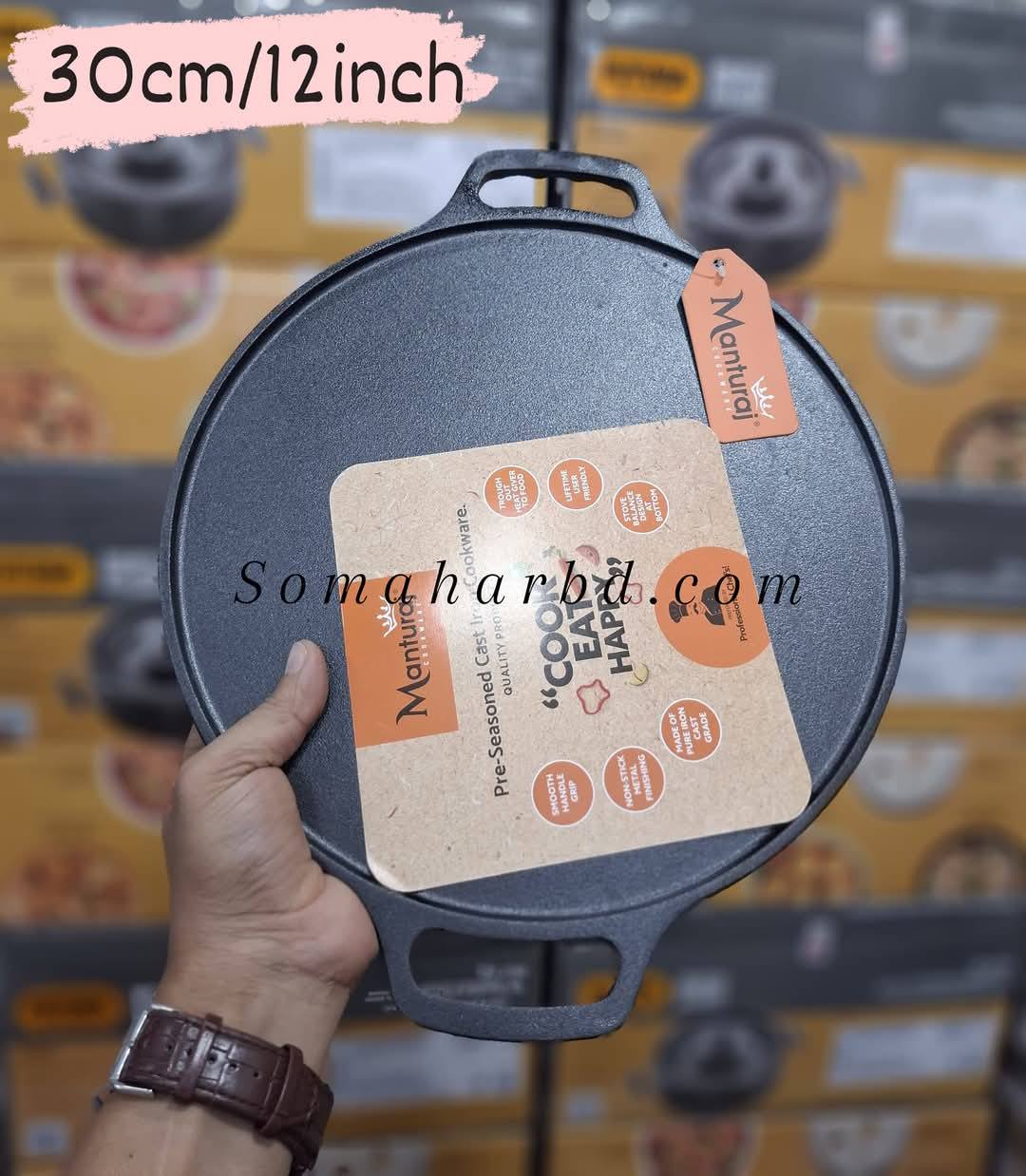 MANTURAJ Cast Iron Tawa/Tava for Dosa/Roti/Chappati/Naan with Double Handle | Gas & Induction-Friendly | Pre-Seasoned, 100% Toxin-Free, Naturally Non-Stick, Long Lasting (12 INCH) (c)